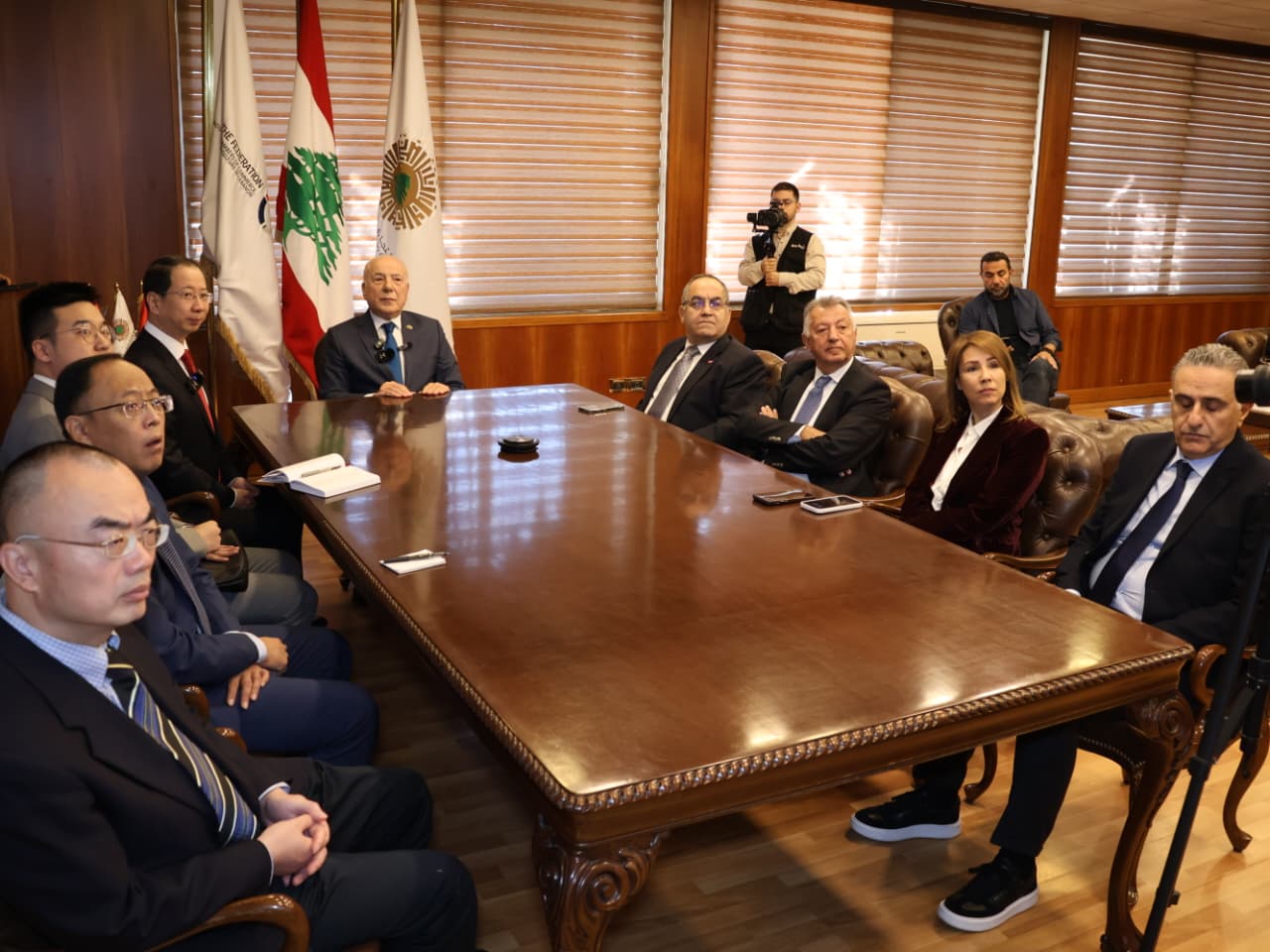 The first stop for the ambassador and his delegation was the Tripoli and North Chamber of Commerce, Industry, and Agriculture, where he was received by Chamber President Tawfiq Deboussi. A meeting was held with Vice President Ibrahim Fawz, Ali Mahmoud El Abdallah, Abdel Ghani Kabbara, Chamber Director General Linda Sultan, Board Chairman and General Manager of Bayat Nasri Mouwad Association, and Chamber Lab Director Dr. Khaled Al-Omari. President Deboussi briefed the Chinese ambassador on the history of Lebanese relations with China in general, and Tripoli specifically.