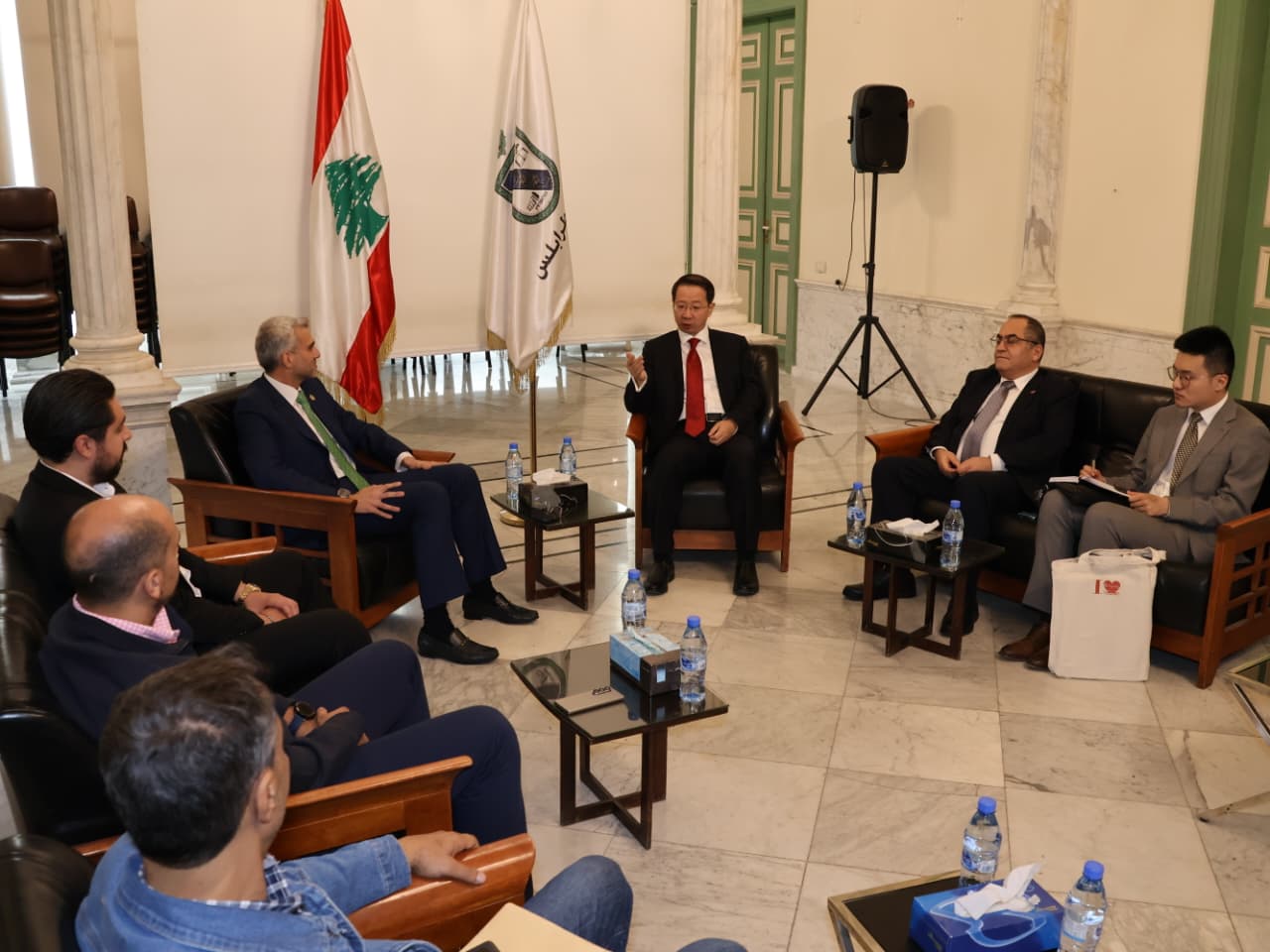 Subsequently, an extended meeting included Dr. Hani Al-Shaarani, Chairman of the Rashid Karami International Fair; Dr. Hassan Dnawi, Head of the Tripoli Special Economic Zone; and Sara Al-Sharif, Deputy Head of Tripoli Port. The participants discussed ways to develop cooperation between Lebanon and China from Tripoli. The ambassador affirmed Lebanon’s capability for success and wished for peace and security in the future, noting that China is a loyal friend of Lebanon, seeks to support its security and economy, and promotes collaboration. He also confirmed that the embassy resumed issuing visas to Lebanese citizens at the end of September to facilitate travel between China and Lebanon.