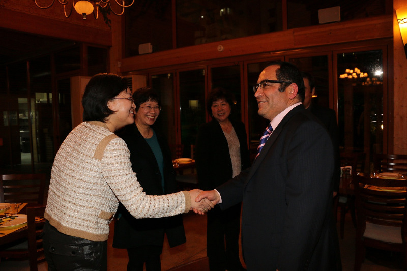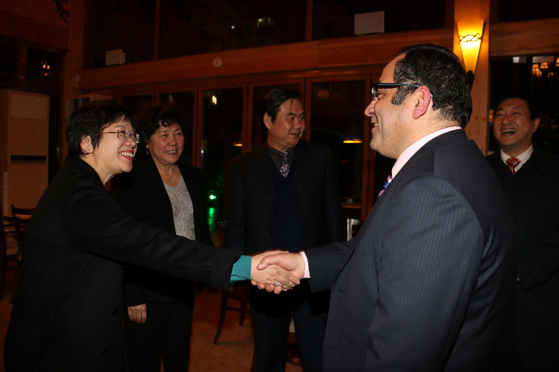 Han Jing و الملحق الثقافي السيد Chen Zhonglin و السيدة زوجته و من المكتب السياسي السيدة Shen Huizhen Najwa و القسم التجاري السيد Li Bing Abbas