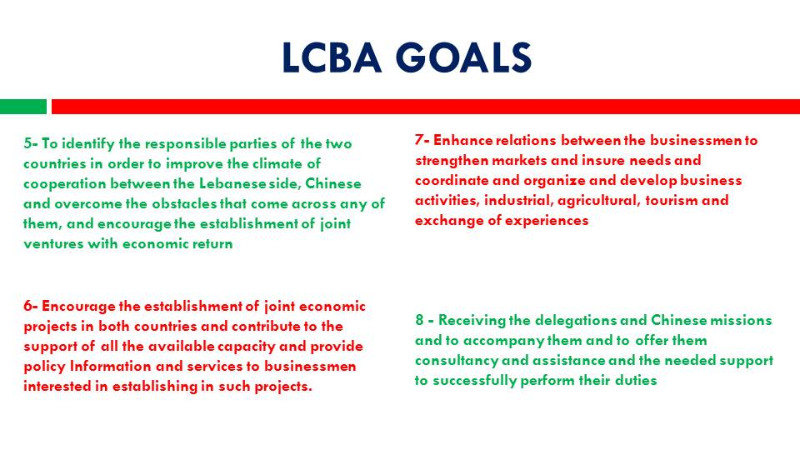 Lebanese – Chinese Business Association - LCBA aims to: